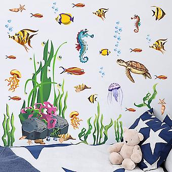 Freudige unter dem Meer Fisch Aufkleber 32 Stück Ozean Wandtattoo Hai Aufkleber Aufkleber für Wände Peel and Stick für Kinder Baby Schlafzimmer Badezimmer Kinderzimmer -