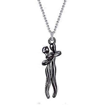 Mode Spleiß Umarmung Katze Paar Anhänger Halskette Edelstahl Lo