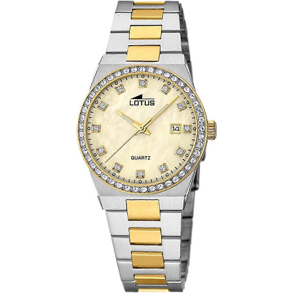 Type: Montre Marque: Lotus Genre: Femme Styles: Classique Age: Adulte Couleur du bracelet: Bicolore Mouvement: Quartz Fonctionnalités: Dateur Matière Bracelet: Acier Affichage: Analogique Etanchéité: 100 m (10 ATM) Matière Boitier: Acier Forme de Boitier: Rond