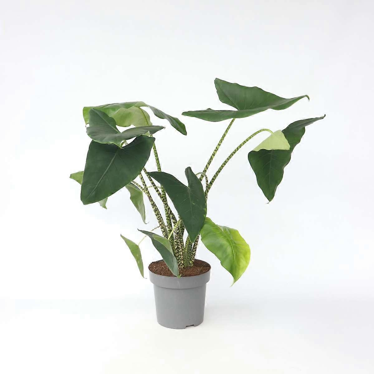 Alocasia 'Zebrina' - Olifantsoor - 140-150cm - Ø32cm - Kamerplant - Groenblijvend Alocasia 'Zebrina' – Olifantsoor🌿 Hoogte: 140-150 cm | Potmaat: 32 cm Op zoek naar een echte blikvanger in huis? De Alocasia 'Zebrina', ook wel Olifantsoor genoemd, is een tropische plant met een unieke uitstraling. De grote, pijlvormige bladeren gecombineerd met opvallende zebrapotige stelen maken deze kamerplant bijzonder en stijlvol. Perfect voor elk modern interieur Tropische uitstraling met extra grote bladerenUnieke stelen met zebraprint 🦓Brengt hoogte en leven in je interieurLuchtzuiverende werkingGroeit snel bij goede verzorgingIdeaal voor lichte woonkamers of kantoren Let op: de Alocasia 'Zebrina' is giftig bij inname, dus plaats de plant buiten bereik van huisdieren en kleine kinderen. Verzorgingstips:Zet de plant op een lichte plek, maar niet in direct zonlicht. Houd de potgrond licht vochtig, maar voorkom dat de wortels in water blijven staan. Af en toe sproeien helpt om het blad schoon en gezond te houden. In de lente en zomer kun je maandelijks bijmesten voor een extra groeiboost 🌱. Met zijn opvallende look en elegante vormen is deze Alocasia een echte must-have voor plantliefhebbers