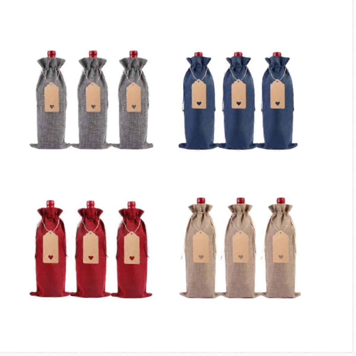 INF 12 stragsko Vinpåsar i Linne Blandade Färger Vinflaskpresentpåsar