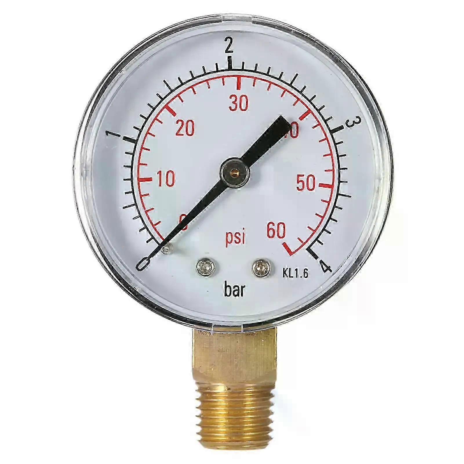 0~60psi 0~4bar/0~15psi 0~1bar 50mm Pool Filter Water Pressure Dial Hydraulic Pressure Gauge Meter Manometer 1/4 NPT Thread hwy