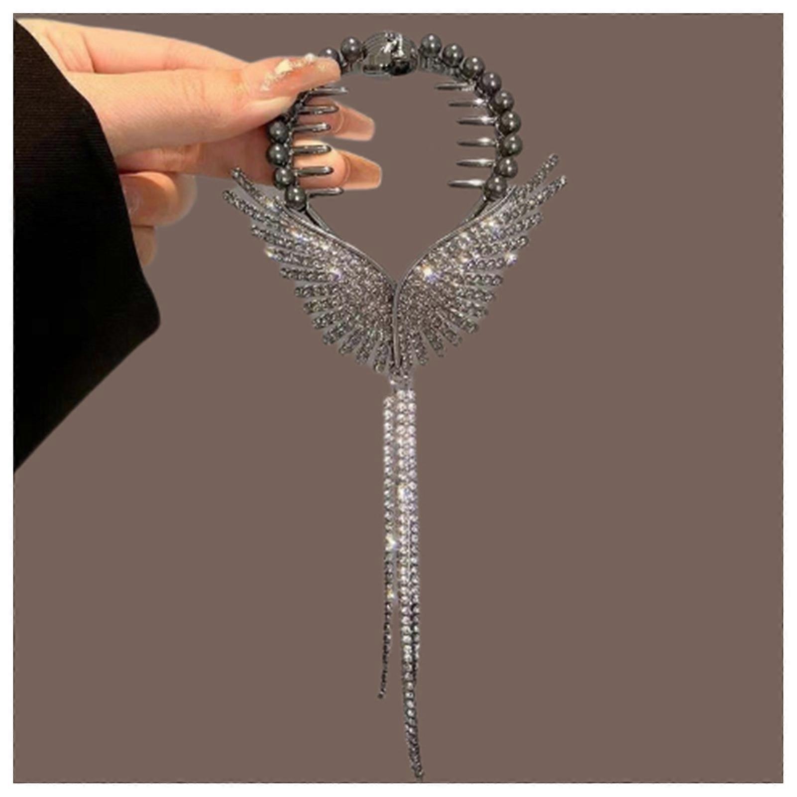 Features : Stylish Design: Our ponytail bun holder features an elegant tassel and unique wing decor, adding a touch of charm to any hairstyle, perfect for daily wear or special occasions. Versatile Hair Accessory: Suitable for all hair types, including thin, thick, long, and short hair, these claw clips allow for effortless styling and customization, making them a must-have for every hair enthusiast. Secure Hold: Our powerful Chinese style bobby pins keep your hair firmly in place throughout the day, ensuring that your hairstyle is perfect without slipping or discomfort. Easy to Use: The Ponytail Holder Smudging Shark Clip is user-friendly, allowing for quick and easy styling. Perfect for busy mornings or on-the-go touch-ups, it simplifies your hair routine. Perfect Gift Idea: These Bling Bun Clips with Wings Decor make an excellent gift for women and girls. Ideal for birthdays, holidays, or just because, they add a fun and fashionable flair to any hair accessory collection. Specification: Material: Alloy Size: 9*9.3cm Include: 1 * Hair Clip