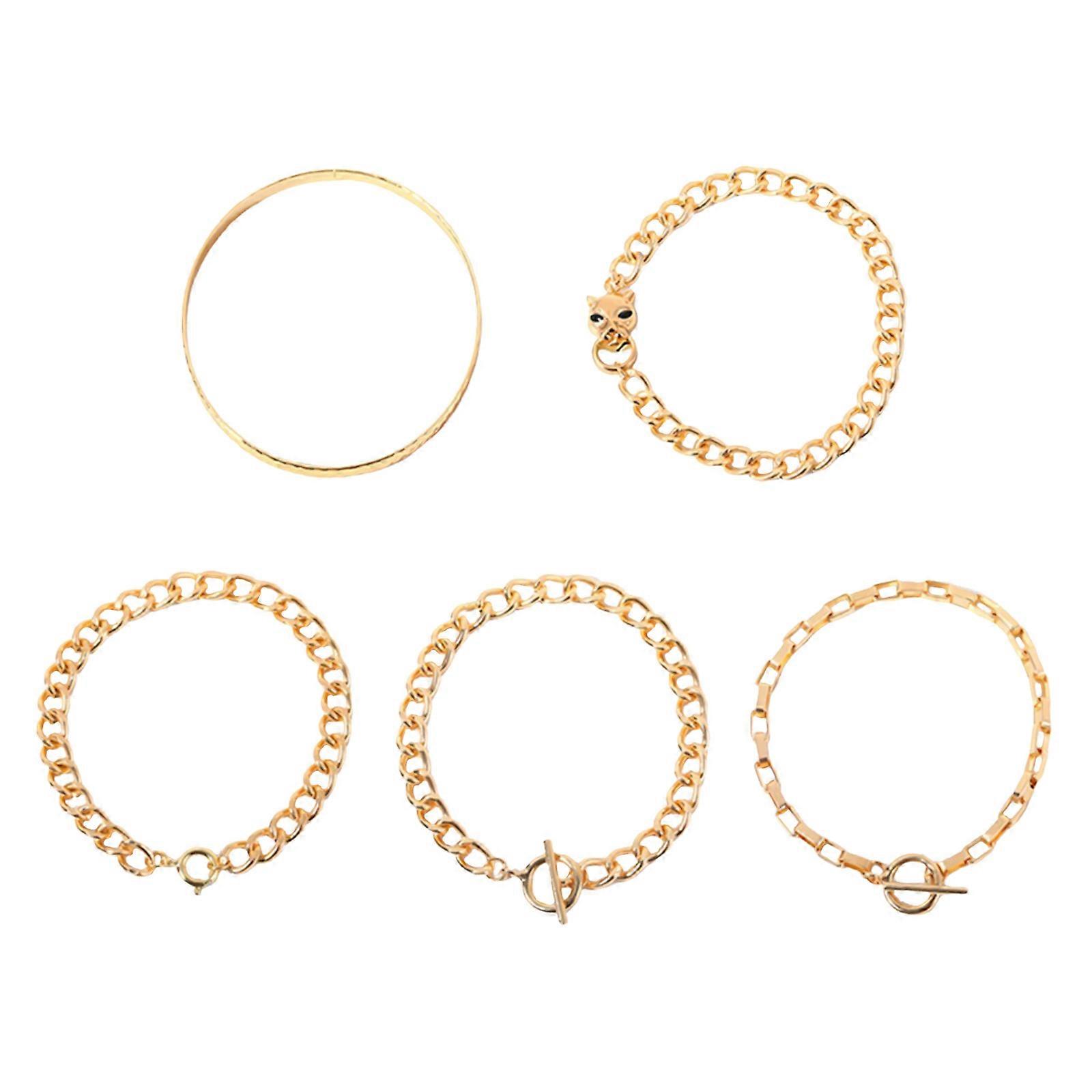 Features: Versatile Style Collection: This set includes 5 boho layered link bracelets and 5 simple boho stackable bracelets, offering a variety of options to mix and match for different looks. Quality Craftsmanship: Crafted with care, these chunky layered link bracelet chains are made to last, ensuring durability and long-lasting wear. Meaningful Design: The classic love friendship trendy chain hand jewelry symbolizes affection and connection, making it a thoughtful gift for women, girlfriends, or mothers. Elegant and Comfortable Fit: The light luxurious wrist cuff wrap bracelet is designed for a snug and comfortable fit, adding a touch of sophistication to any outfit. Perfect Gift Choice: Ideal for stage performance wear or as an anniversary, birthday, or engagement gift, this delicate alloy charm bracelet set is a fashionable and sentimental choice for special occasions. Specification: Material: Alloy Size: 19cm in Length/6.8cm in Diameter Notes: Due to manual measurement,please allow 0-2cm measuring deviation.Thank you for understanding! Include: 5PCS/Set Bracelets