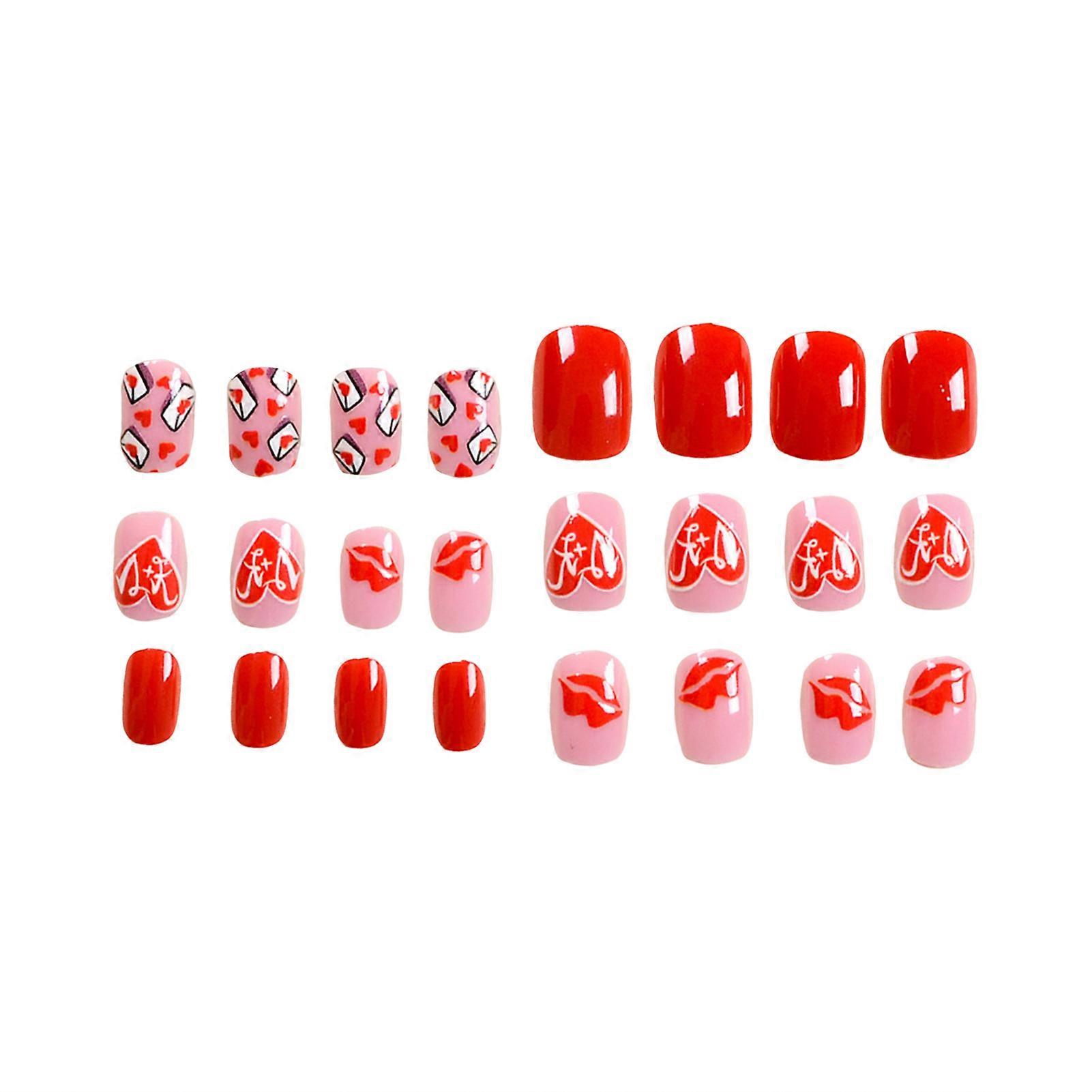 Features: Ultra-flexible and Long Lasting: These press-on nails are made with high-quality materials, ensuring their flexibility and durability. They are designed to withstand daily wear and tear, providing a long-lasting manicure experience. Heart Decor for Sweet & Charming Look: These press-on nails feature adorable heart decorations, adding a touch of sweetness and charm to your manicure. They are perfect for creating a romantic and feminine look. Natural and Smooth Edge Nails: The square fake nails have a natural and smooth edge, giving them a realistic appearance. They blend seamlessly with your natural nails, providing a professional-looking manicure. Reusable and Easy to Apply: These false nails can be easily applied and removed without causing damage to your natural nails. They are reusable, allowing you to enjoy multiple uses and saving you money in the long run. Versatile for Various Occasions: These nails are suitable for various occasions, including hot girl dress matching, stage performances, shopping, traveling, and dating. They complement your outfit and enhance your overall style, making you stand out wherever you go. Specifications: Material: Resin Quantity: 24PCS Length: 1.7cm,1.65cm,1.5cm,1.4cm Include: 1 Set * False nails (24pcs included) 24PCS * Jelly glue 1 * Nail rub strip