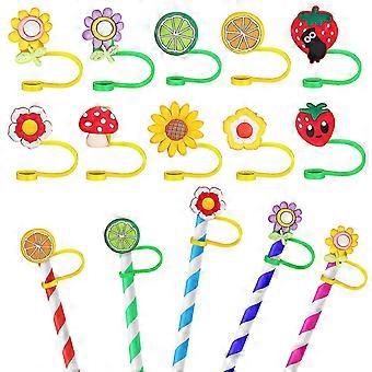 10 Stück Strohkappen Abdeckungen Silikon Strohhalm Spitze Abdeckungen Strohstopfen Cartoon Strohkappen Wiederverwendbare Strohhalm-Topper 2025
