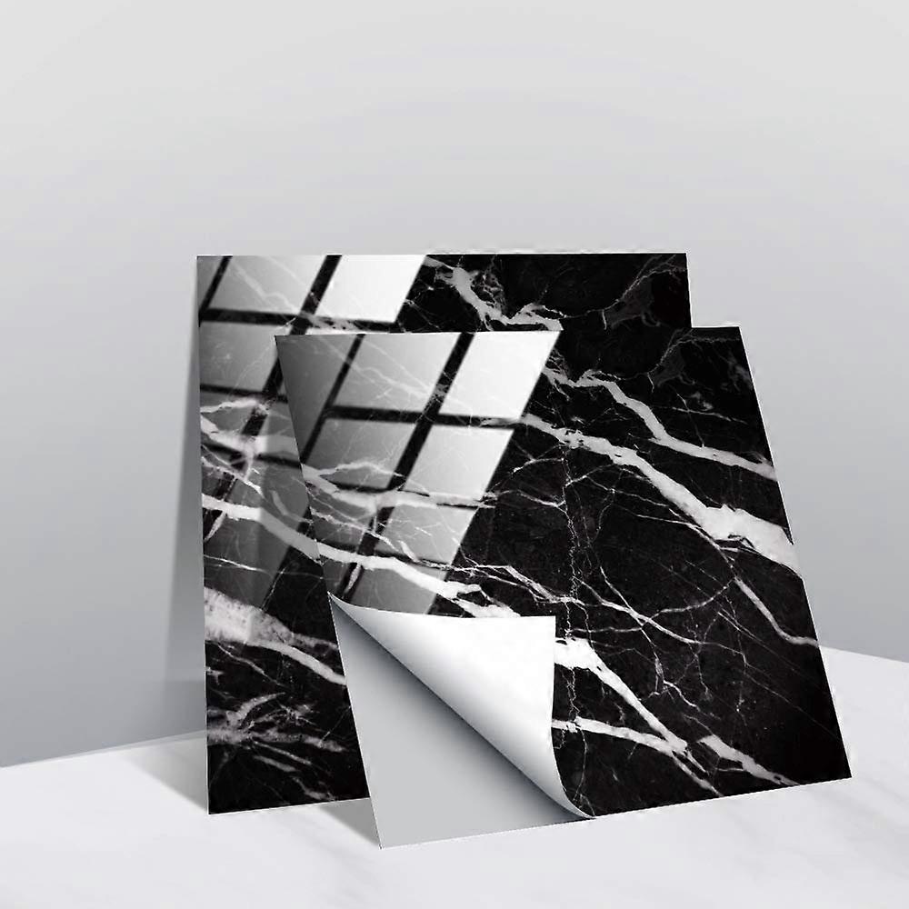 10pcs Kitchen Bathroom Wall Tile Stickers, DIY Square Marble Mosaic Scales Style Waterproof Decals Sticker Home Decor Self-Adhesive (Black 2,15x15cm)