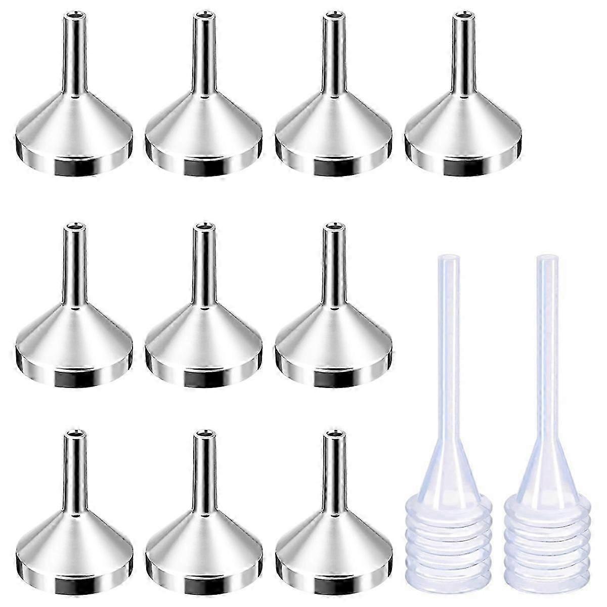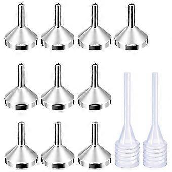 10 Pack Small Metal Funnels with 2 Pack Mini Pipette, Silver&Gold