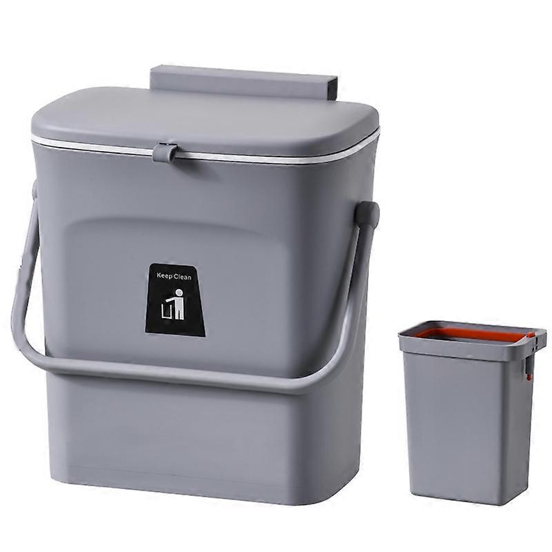 2 in 1 Kitchen Trash Can with Sliding Lid, Under Sink Trash Can, 9L Trash Can with Inner Bucket, Portable Hanging (grey)