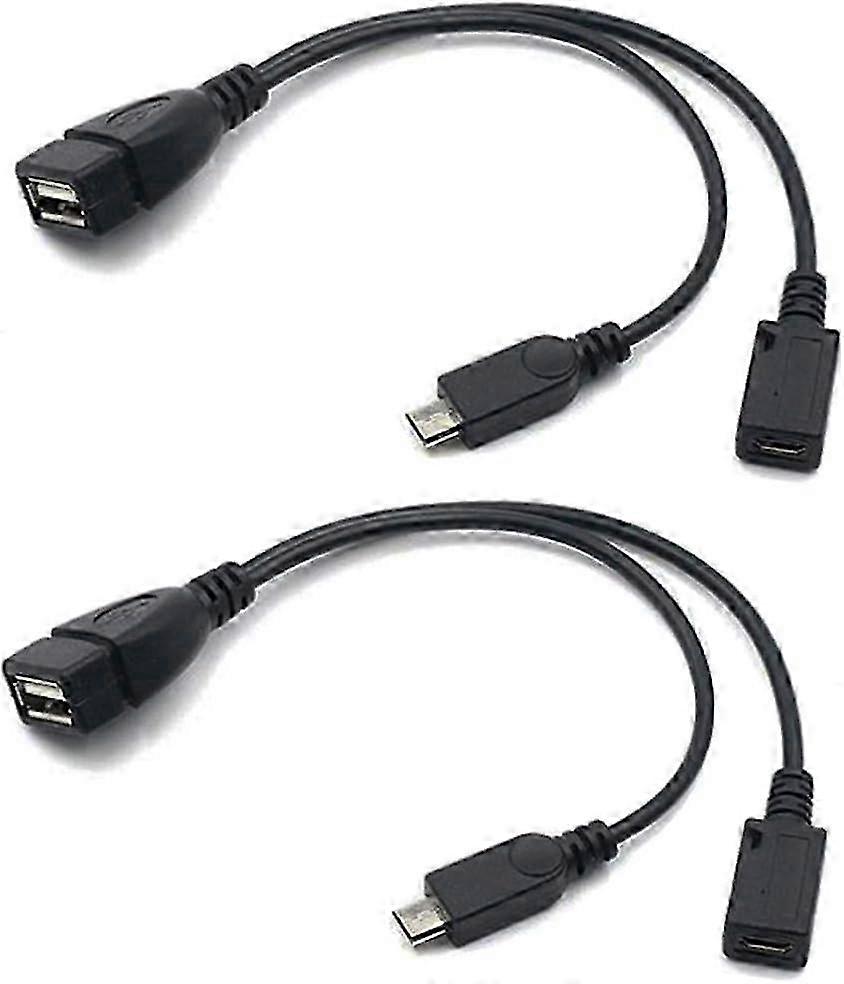 2-in-1 Micro USB to USB Adapter (OTG Cable + Power Cable) for Compatible Android Devices - 2 Pack