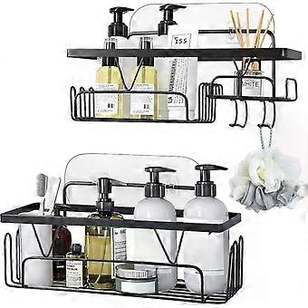2-teiliges No-Drill Duschablagen-Set mit 8 Haken, Edelstahl, selbstklebend für Bad & Küche, Shampoohalter, 6kg Belastung, schwarz