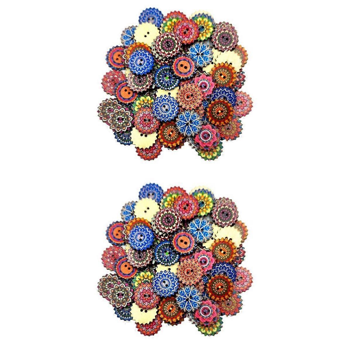 200Pieces Wooden 2 Holes Painted Sewing Buttons Craft DIY