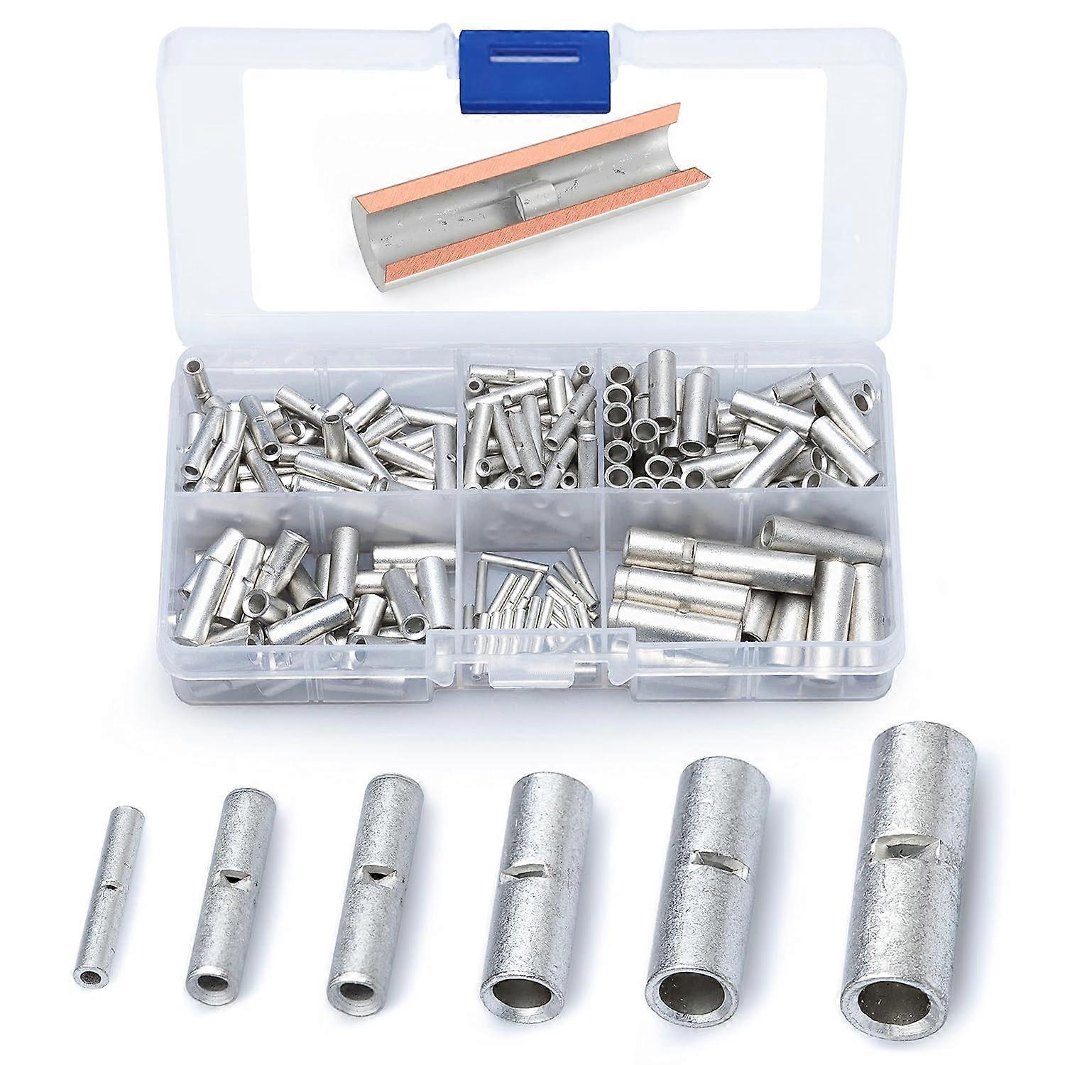 200 Pieces Non-Insulated Butt Crimp Terminals Kit - Wire Terminals - 0.5-6 mm²,T-Audace