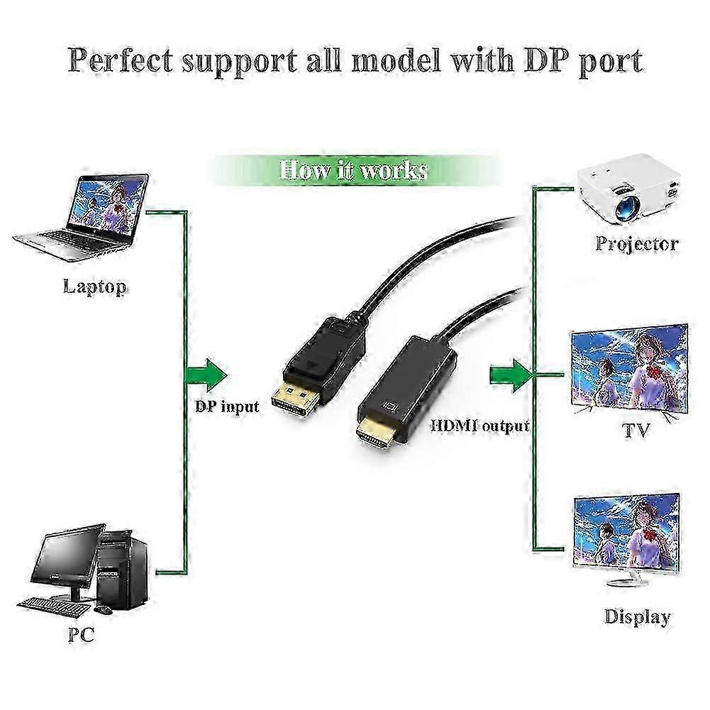 2025 2025 Displayport to HDMI Cable 6 feet 2-Pack, UKYEE Display Port (DP) to HDMI