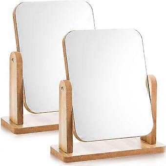 2025 2 Pack Rotation Makeup Mirror with Wooden Stand, Tabletop Design for Desk