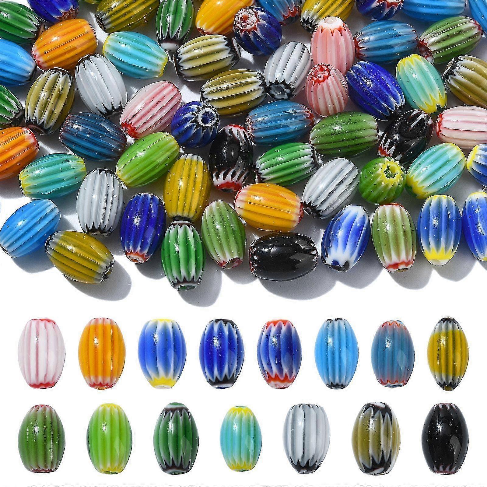 2025 90Pcs 15 Styles Handmade Millefiori Beads Barrel Drum Shaped Beads Glass Spacer Beads