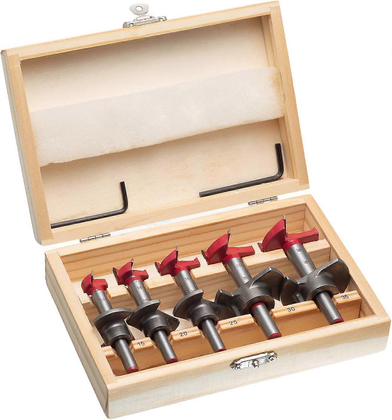 2025 Latest Model BR-Vie Drill Bit, 5pcs 15-35mm Adjustable Positioning Drill Bit Set, Cemented Carbide Wood Hole Saw with Depth Stop (Depth Range 1