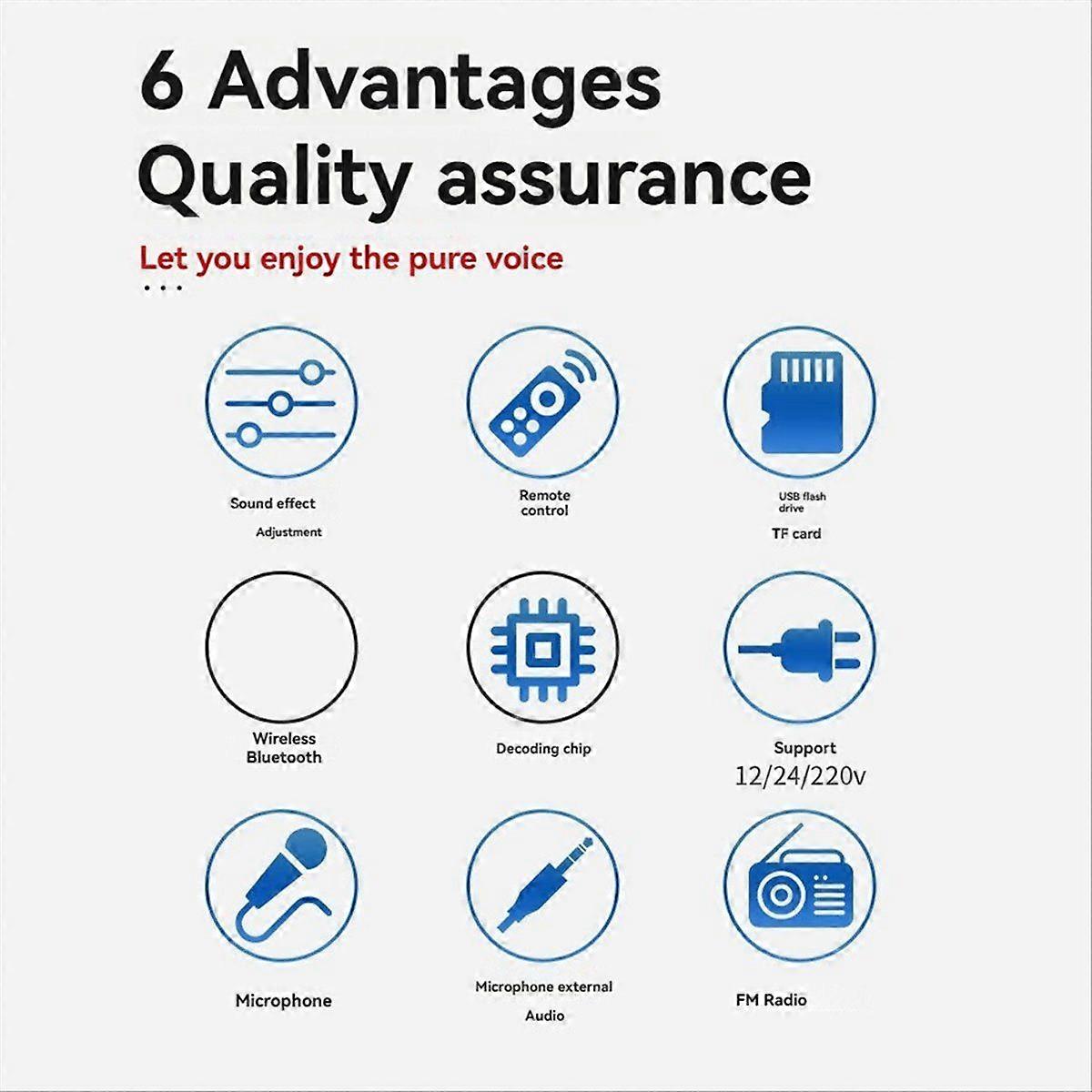 1. Support reading MP3 songs in TF card and U disk. 2. Support adjustment of and treble. 3. Audio input:Bluetooth in/AUX in/USB/TF Card. 4. Audio output:1 and 1 Treble. 5. Rate Power:100W 6. With Dual Microphone input. Plug Type:EU Plug,it applies to Indonesia, Germany, France, Spain, Italy and so on. voltage:AC110-220V Colour:black Material:iron DC cable and speaker cable colors are random, don't accept the specified color The actual product may have slight color difference or difference, which not affect the use Package Contents: 1 * Bluetooth Amplifier Board 1 * Remote control 1 * Speaker cable 1 * DC Power supply cable 1 * Power supply cable Only the above package content, other products are not included. Note: Light reflection and different displays may cause the color of the item in the picture a little different from the real thing. The measurement allowed error is +/- 1-3cm.