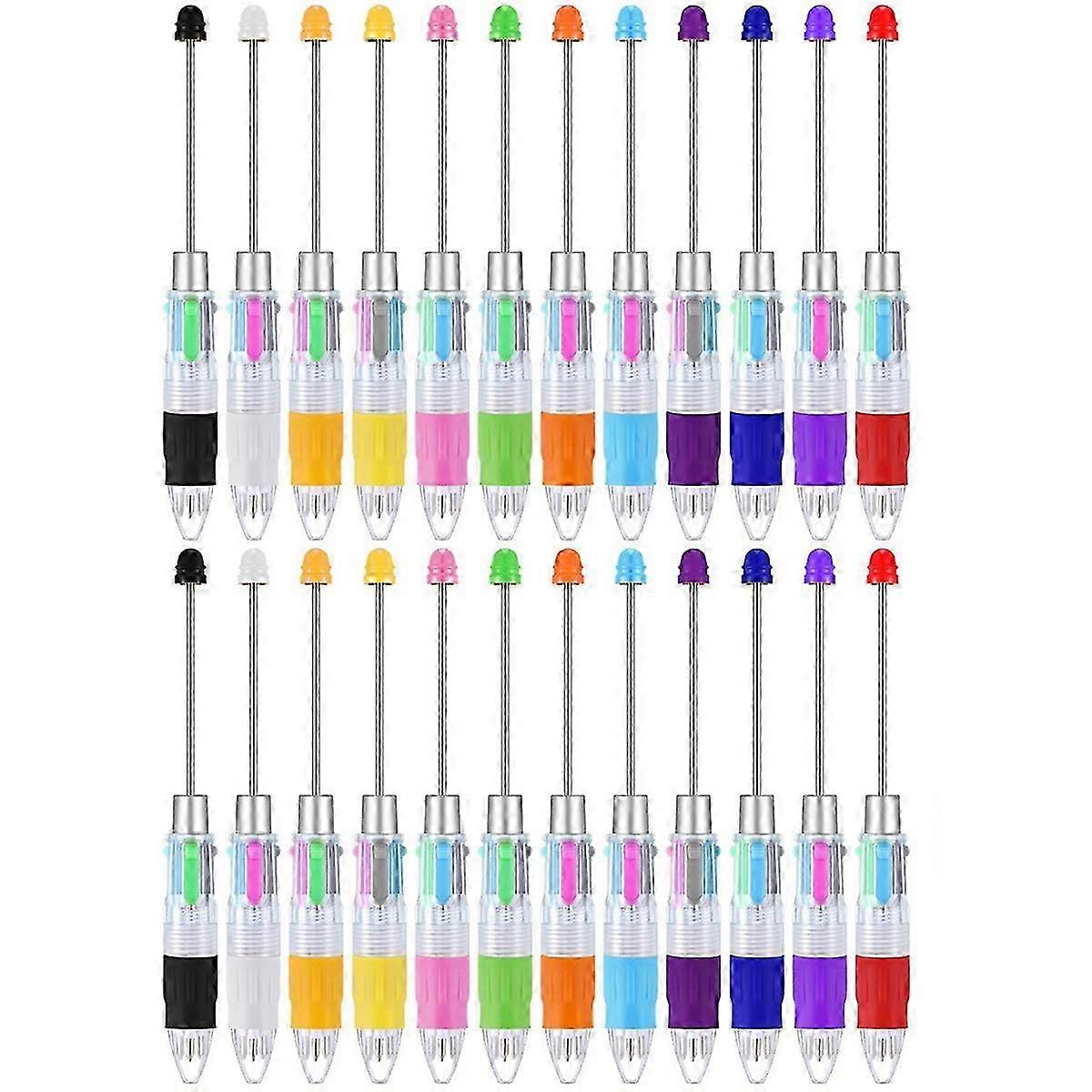 24 Pcs Multicolor Beadable Pens 4-in-1 Colored Beads Pen