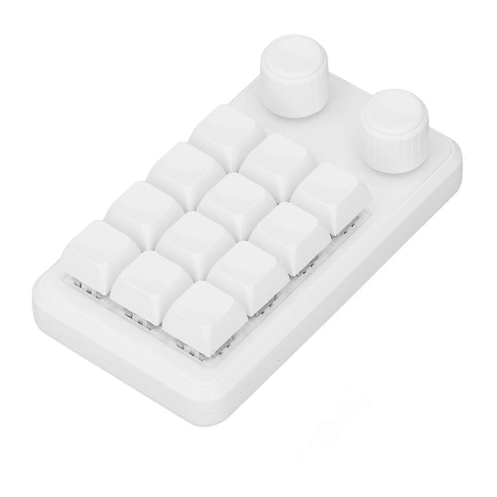 25-26 12 Key Mechanical Keyboard 2 Knobs 3 Modes Programmable Blue Switch Keypad for Gaming Office Music White