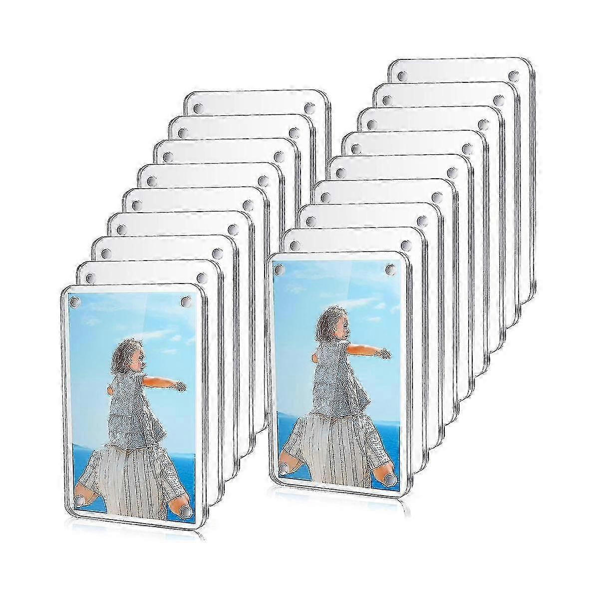 25-26 18 Pcs Acrylic Magnetic Photo Frame 2x3'' Mini Double Sided Refrigerator Magnet Picture Frame Clear Photo Display Frame for Fujifilm Instax Lock