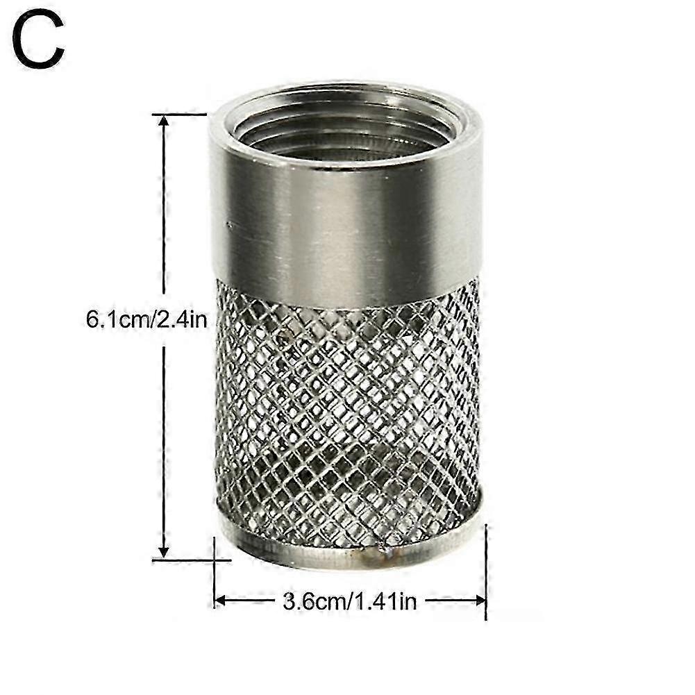 Product name: 304 all stainless steel internal thread filter cover,Inlet Suction Strainer Garden Hose Inlet FilterProduct size: 4.7*2.5cm/1.85*0.98inch;5.1*3cm/2*1.18inch;6.1*3.6cm/2.4*1.41inchProduct color: As shown in the figureProduct material: stainless steelProduct features:1.The dimension of hose Inlet strainer is 4.7*2.5cm/1.85*0.98inch;5.1*3cm/2*1.18inch;6.1*3.6cm/2.4*1.41inch.2.This hose Inlet strainer is made of stainless steel ,Extremely waterproof, this sink filter plug is designed for long-term use.3.This hose Inlet strainerhas unique design ,which makes it easy to open and close the drain. it can prevent particles or debris from entering the pump, causing blockage and damage.4.This hose Inlet strainer can be applied for garden, irrigation, aquarium, and water pump filter5.You will receive 1pcs hose Inlet strainer ,which can meet your daily life need.Precautions:1. As we all know , the different computers display colors differently, the color of the actual item may vary slightly from the following images.2. If you feel difficult to choose the size, you can feel free to contact mewe will give you some suggestion, but it is for you reference only.Shipment includes:1pcs hose Inlet strainer Note: Due to the light and screen setting difference, the item's color may be slightly different from the pictures. Please allow slight dimension difference due to different manual measurement.