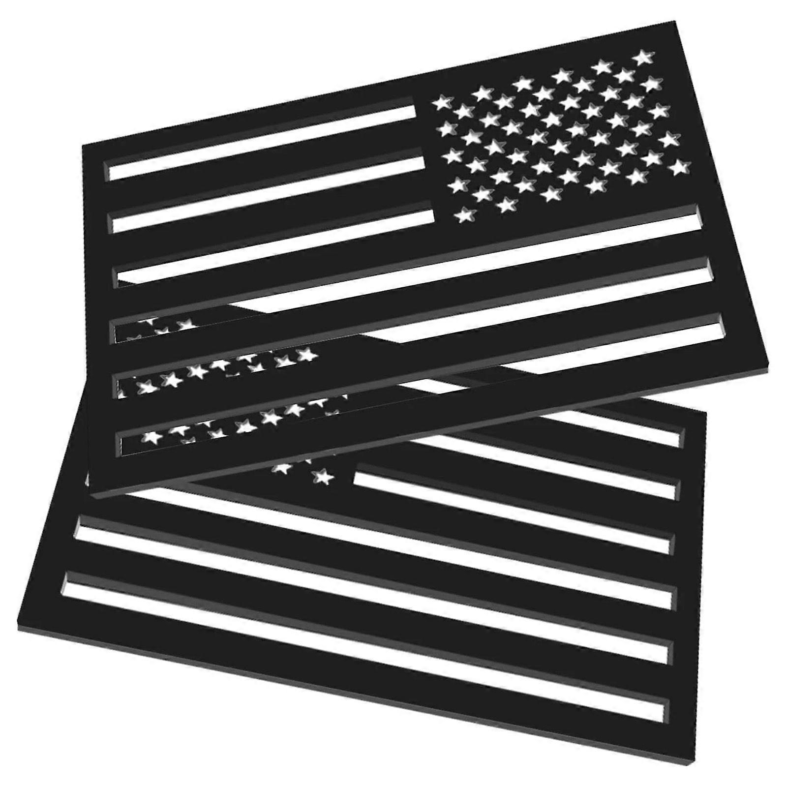 2 Pack Embossed 3D Metal All Black American Flag Emblem Decal Hollow Out