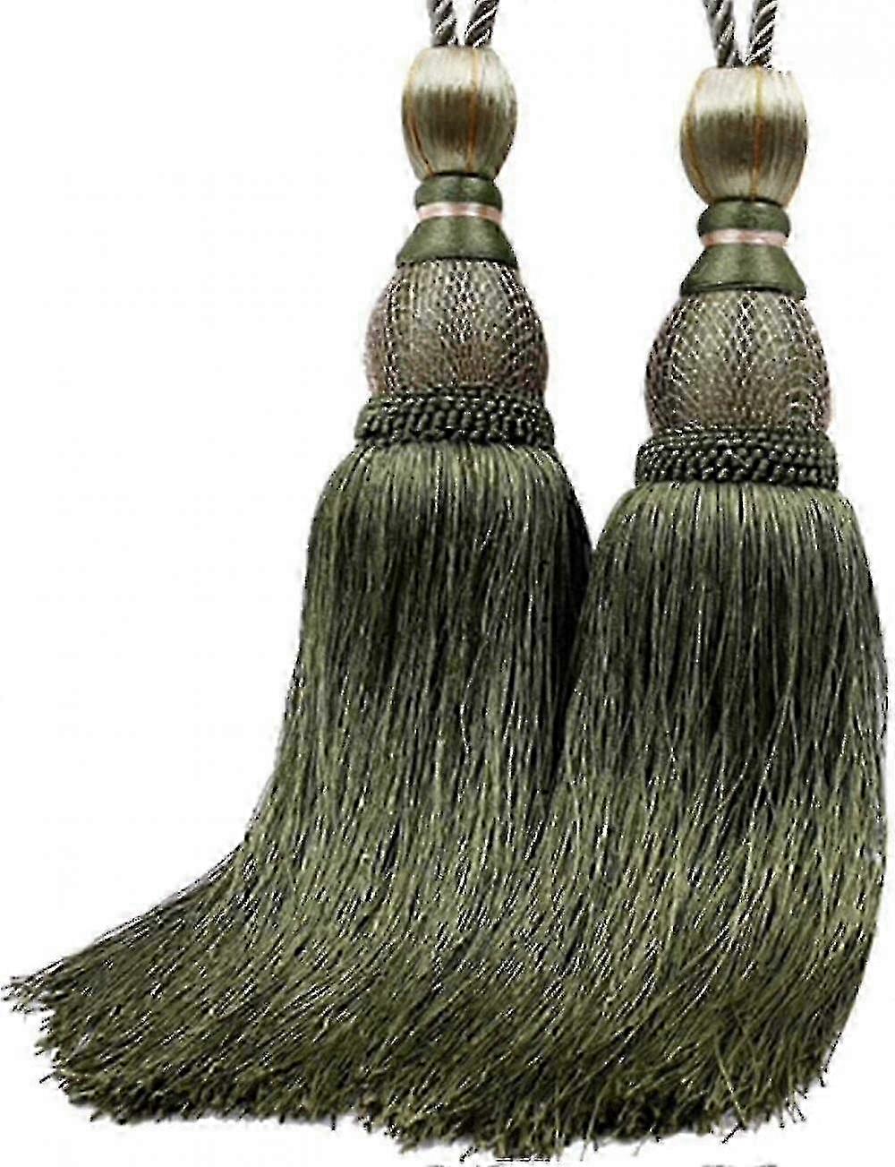 2pcs Army Green Tassel Curtain Tiebacks - Decorative Holdbacks Clips