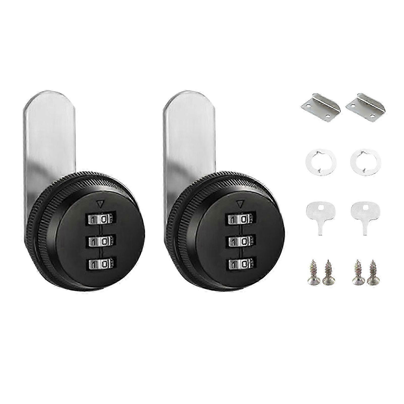 2pcs Practical 3 Digit Code Cams Lock In Silver for Mailbox and Drawer Secure Without Key Zinc Alloy Construction Silver Cs