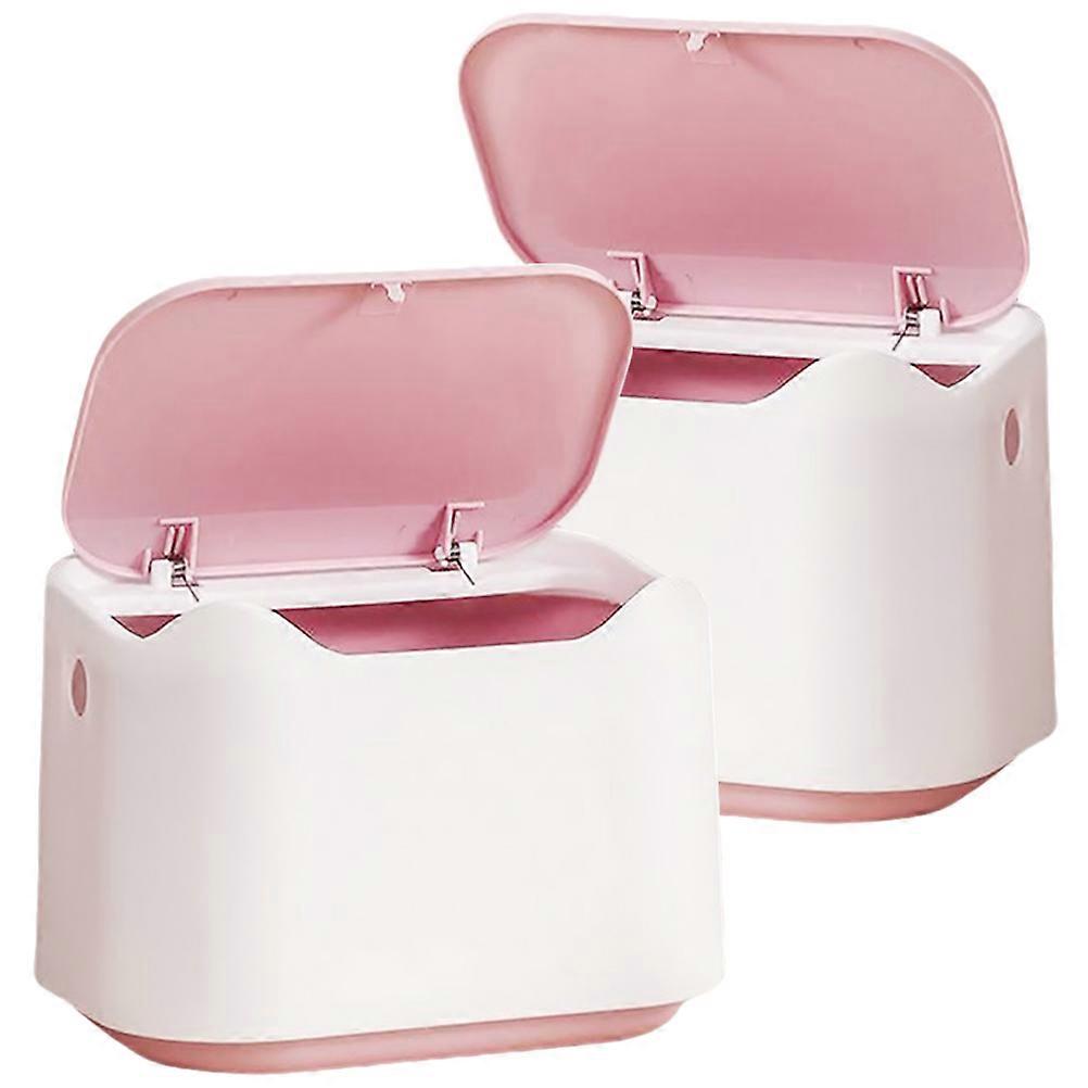 2pcs Press Type Small Trash Can with Lid Desktop Tiny Waste Bin for Desk, Office, Bedroom, Bathroom Stable Material Modern Style Table Trash