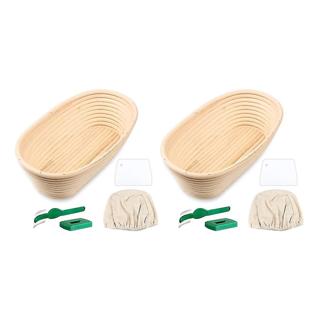 2x Oval Bread Proofing Basket, Handmade Banneton Bread Proofing Basket Brotform With Bread Lame(9.6