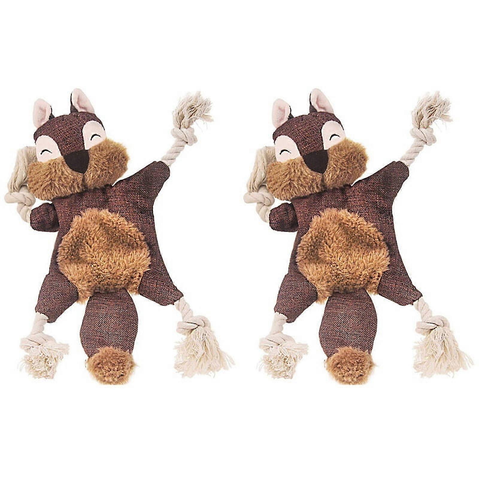 2X Stuffless Dog Toys for , Crinkle Squeaky Dog Chew Toys Squirrel Plush Dog Toy with Rope Knots for Small