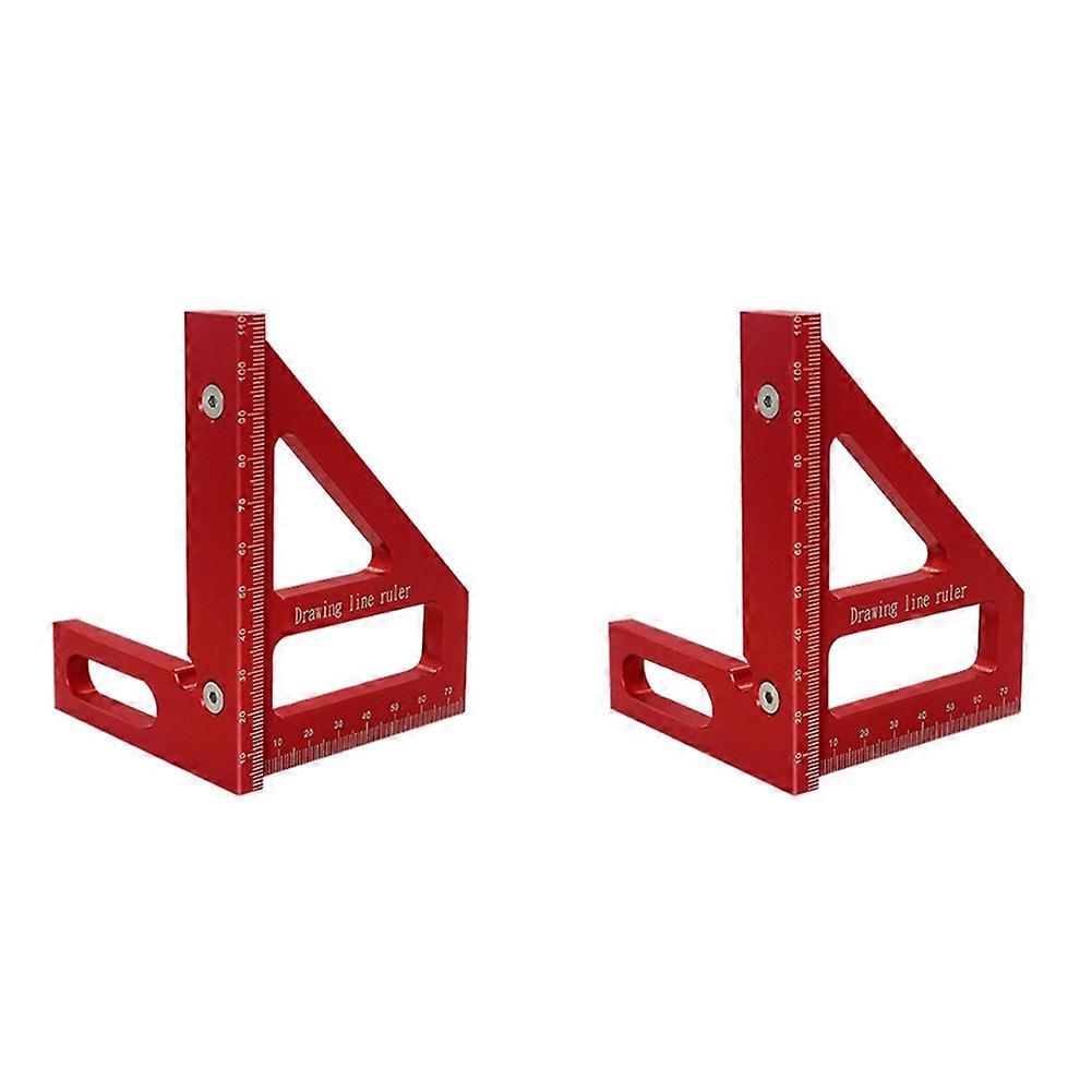2X Woodworking Square Protractor Aluminum Alloy Miter Triangle Ruler Layout Measuring Tool for Engineer Carpenter -Red