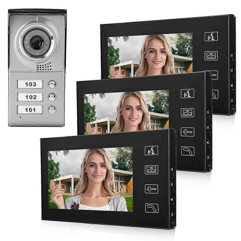 3 Apartment 7in Wired Video Intercom System with IR Camera Doorbell