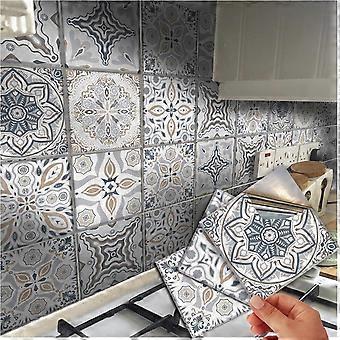 30 Grey and White Waterproof Wall Floor Tile Stickers, 6x6 Inch, for Kitchen, Bathroom, Thin Vinyl Tile Transfers, 15x15cm, Victorian Matte Finish