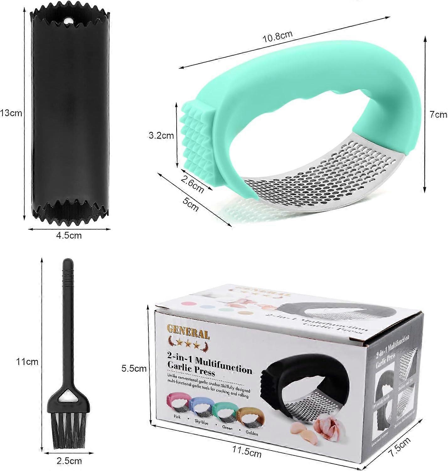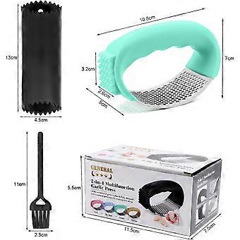 304 Food Grade Stainless Steel Garlic Masher, 2 in 1 Peeler (Green)