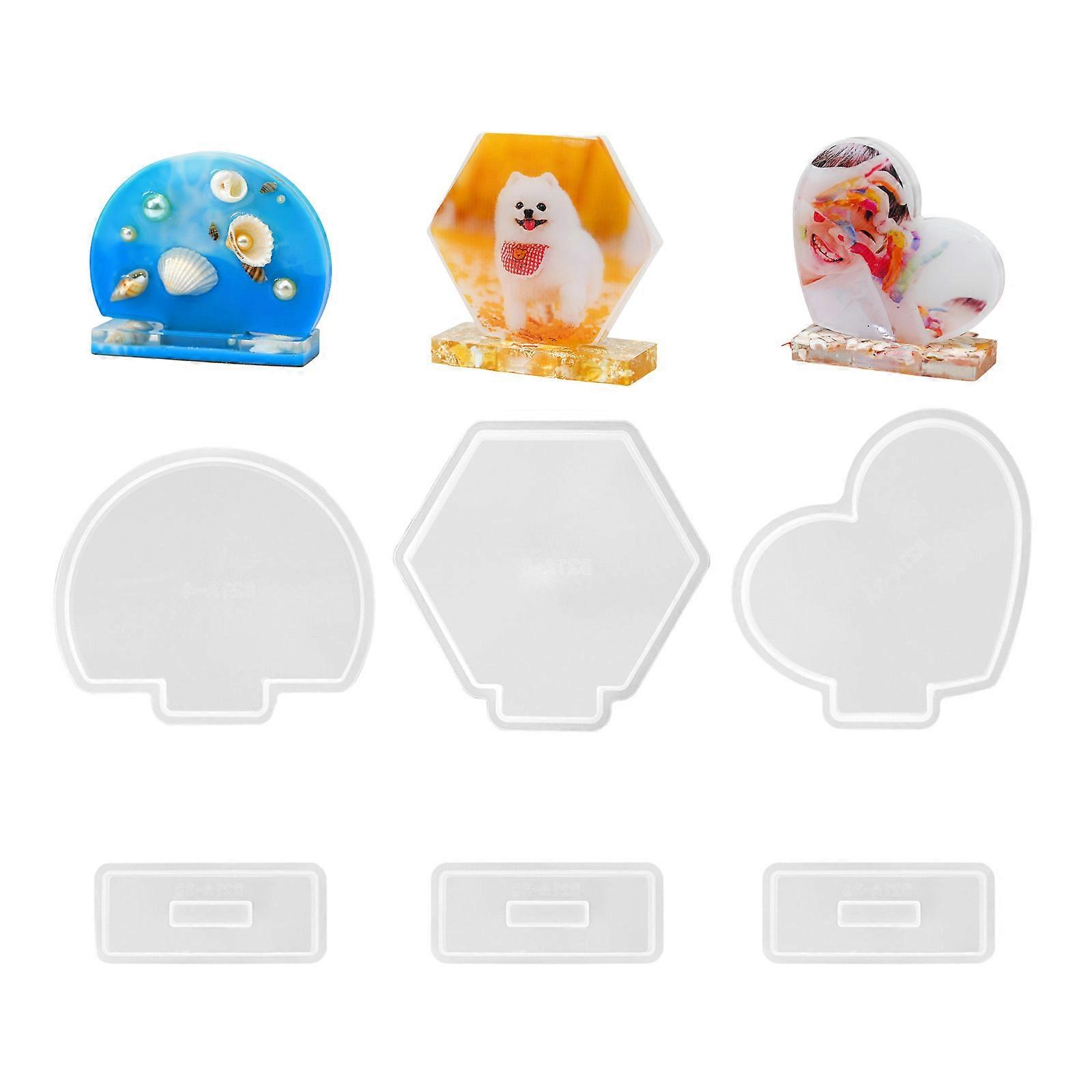 3Pieces Silicone Frame Ornaments Mold Easy to Use Silicone Molding Tool for DIY Round Heart & Hexagon Photo Frame Art Multicolor