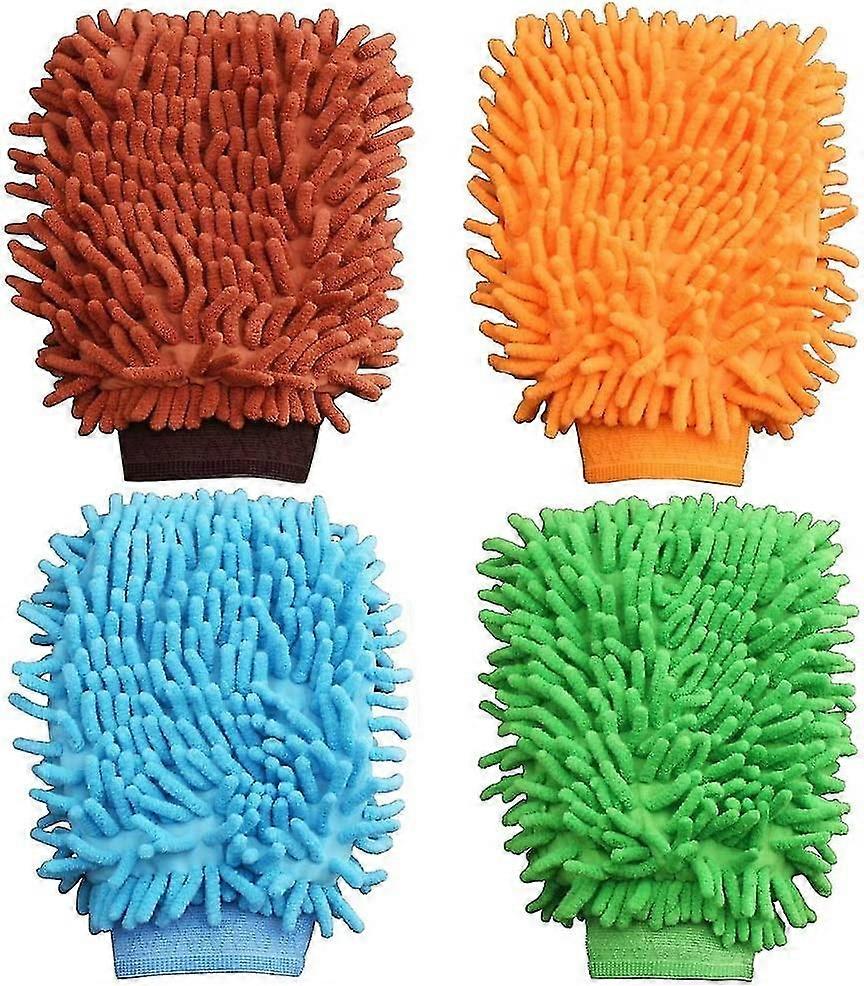 4 Pcs Car Wash Mitts, Double Sided Microfiber Car Wash Mitts Super Absorbent (4-d-w)