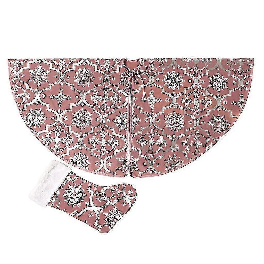 47 Inch Bronzing Christmas Tree Skirt Mat Cover Ornament With Snowflake Stockings Sock Dec