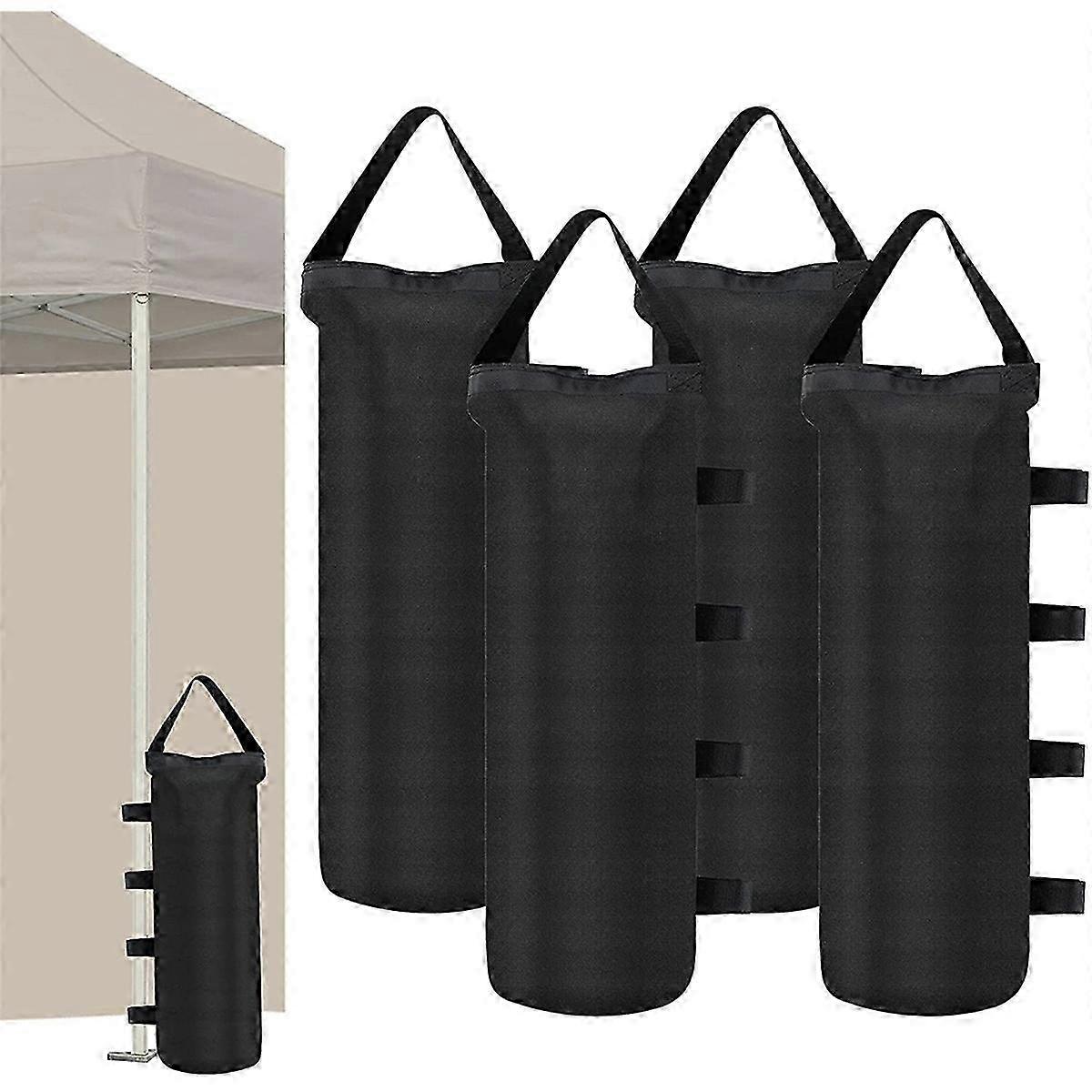 **Drop-Tested Sandbags:** Our canopy sandbags are the only products on the market that have passed a high-impact drop test, withstanding the force of a 30-pound weight dropped from a height of 3 meters. This demonstrates our commitment to superior quality. **Materials:** We use high-density Oxford fabric with a PVC coating to prevent sand leakage and weathering. Additionally, we use 3-ply reinforced threads from a reputable source to provide superior stitching strength, ensuring the sandbags' durability. **Capacity and Dimensions:** Each bag can hold 30 pounds of dry sand and can also be filled with wet sand, soil, or small gravel. Four fully filled bags can help a 10x10 foot tent withstand strong winds exceeding 40 kilometers per hour. The dimensions of our product are 18.5 inches in height with a bottom circular diameter of 6 inches. The side nylon sticker is suitable for canopy tent poles with diameters ranging from 20mm to 50mm. **NOTE:** SAND NOT INCLUDED. **Color:** Black **Material:** Oxford cloth **Package Contents:** 4 * Top Sand Bags for Canopy Legs **Note:** Light reflection and different displays may cause the color of the item in the picture to differ slightly from the real thing. The measurement error allowed is +/- 1-3cm.