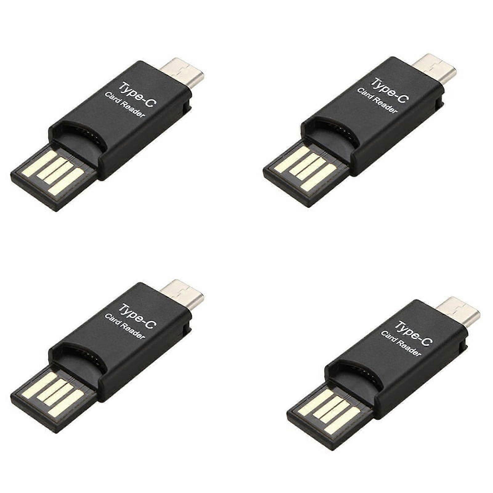 Compact and lightweight, easy to carry Support hot plug, plug and play Support the mobile phone/ with OTG function. Supports -SD and TF cards. Compatible with type-c laptop or phone. Specifications: Size:45 x 15 x 6mm Color:Black Material: ABS Connector :Type-c/USB connector Package includes:4 x Type C Card Reader Only the above package content, other products are not included. Note: Light reflection and different displays may cause the color of the item in the picture a little different from the real thing. The measurement allowed error is +/- 1-3cm. Supports Micro-SD and TF cards. Compatible with type-c laptop or phone. Support hot plug, plug and play Compact and , easy to carry Support the mobile phone/tablet with OTG function.