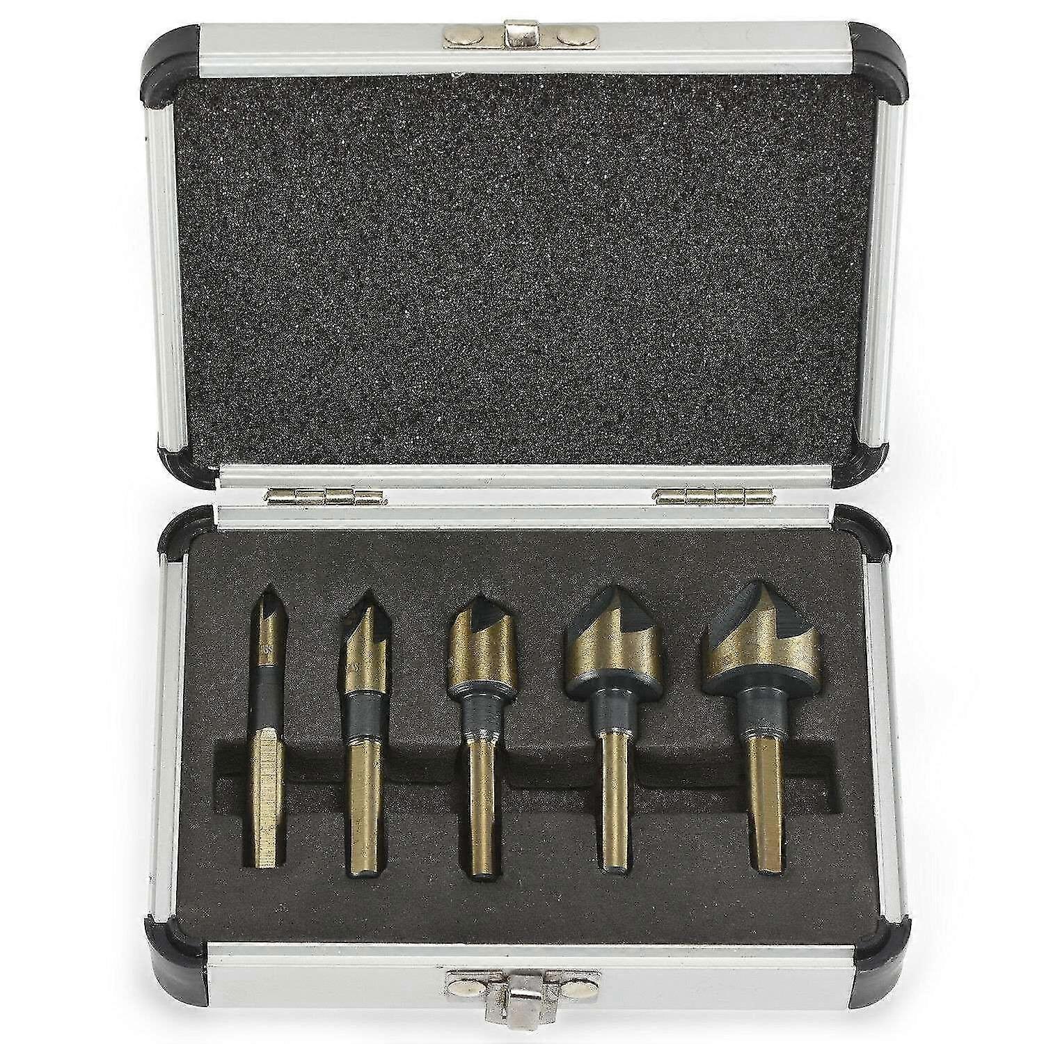 5 Pieces 82 Degrees Countersink Drill Bit 5 Flute Chamfering Cutter Hand Tool Set