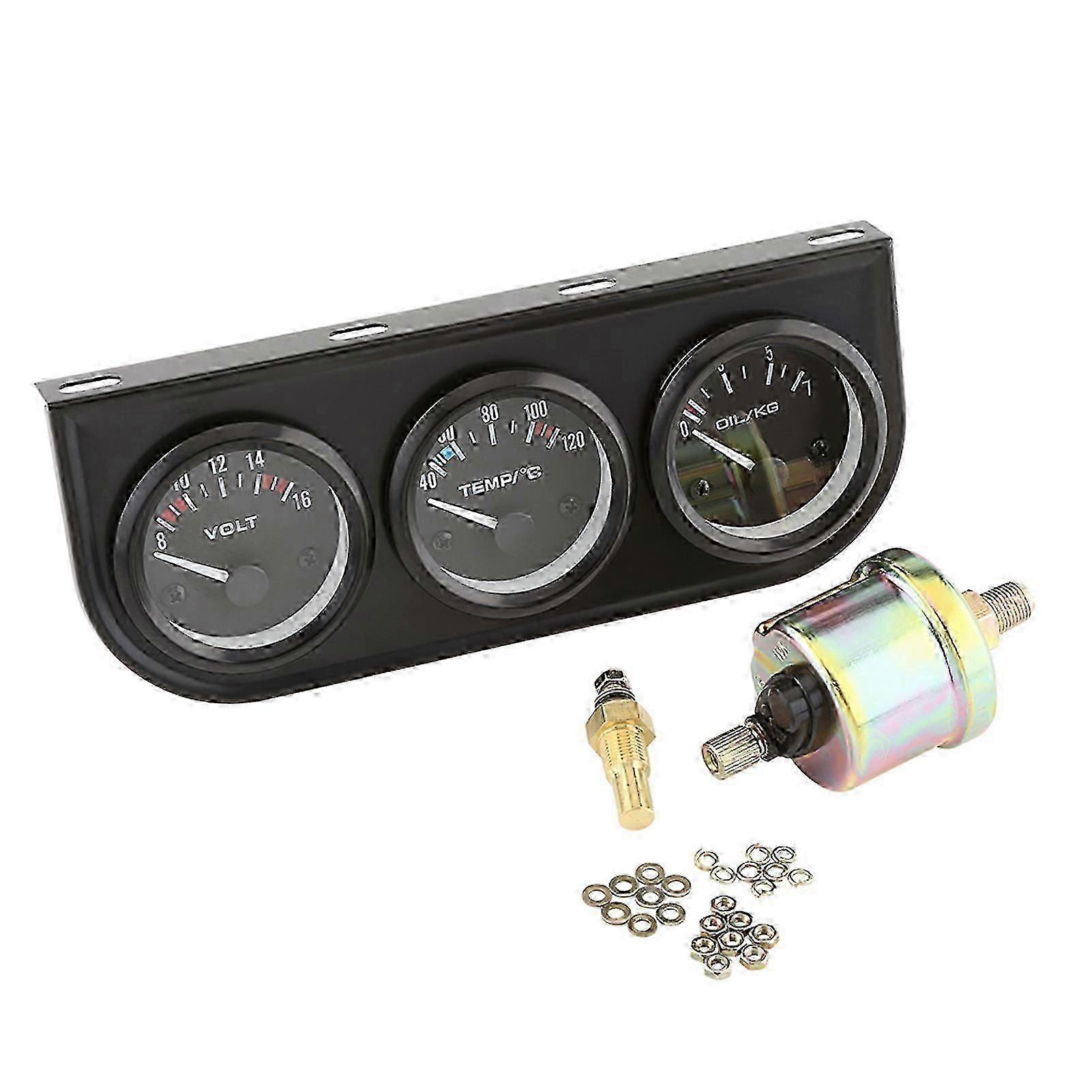 52mm Triple Gauges 3 in 1 Voltmeter Water Temp Gauge Oil Pressure Meter w Sensor For Car Truck Edition 0617