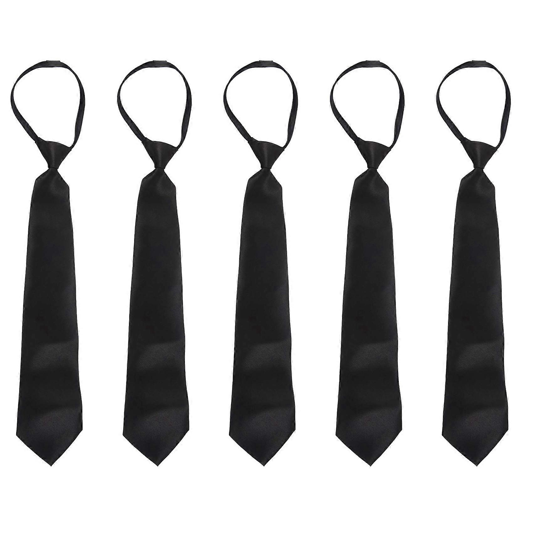 5X Men Solid Black Polyester Zip Up Necktie Smooth Zipper Tie