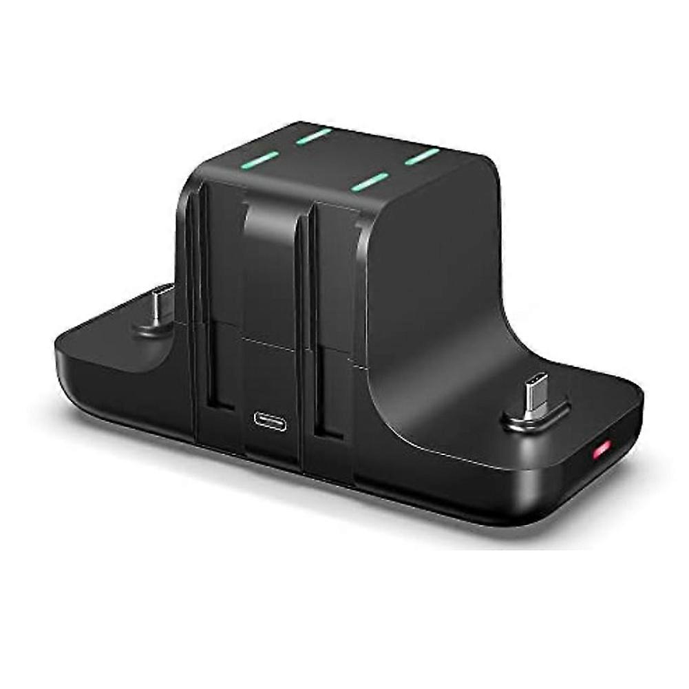 USB C charging cable, plug and play. Charging station for Nintendo Switch Joycon, Pro Controller and all models of Switch devices at the same time. Intelligent chip, over-current over-charging, over-voltage protection. High quality ABS material, not easy to damage. Multiple charging positions charging station, no longer worry about your device being out of power. The bottom has a non-slip pad that does not move easily LED display, charging status is clear at a glance It can be used daily as a storage rack to keep your switch devices in order. [Compatible] Compatible with for Nintendo Switch & OLED & Lite. Charging indicator: JoyCon charging part: The green light is always on when fully charged/standby, and the red light is on when charging. Pro Controller Charging Part: The red light is always on when charging and turns off when full/standby. Colour:Black Material:plastic Package Contents: 1 x Charging Station 1 x USB-A to Type-C Cable