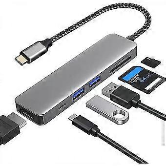 6-in-1-USB-C-Hub-Multiport-Adapter, kompatibel mit Mac, 4K HDMI, 100-W-Schnellladung, USB C und 3 USB A 5-Gbit/s-Datenanschlüsse, USB 2.0