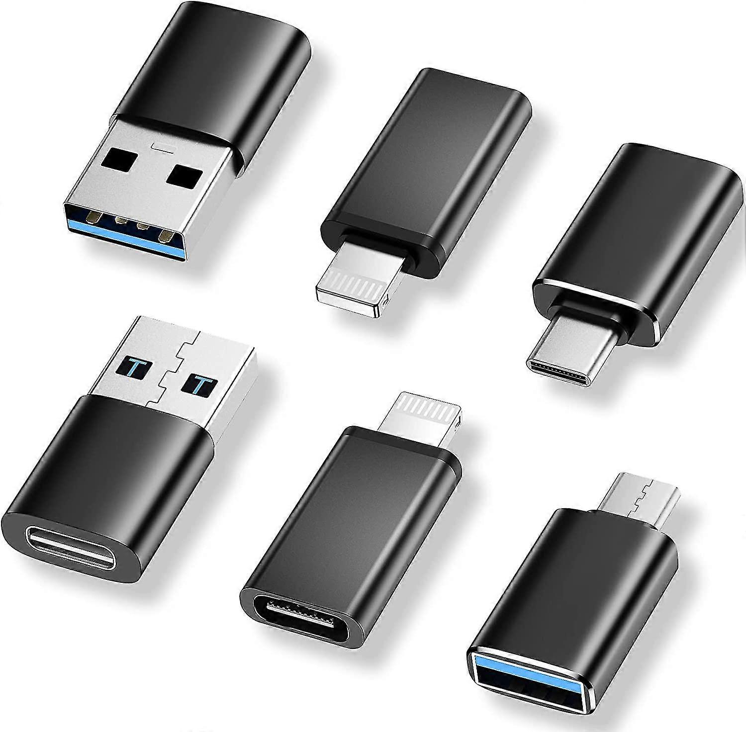 [6 Pack Usb C To Usb Adapter,2*usb-c To Usb&2*usb To Usb-c&2*lightning To Usb-c Female Adapter Superspeed Data Transfer & Fast Charging - Compatible W