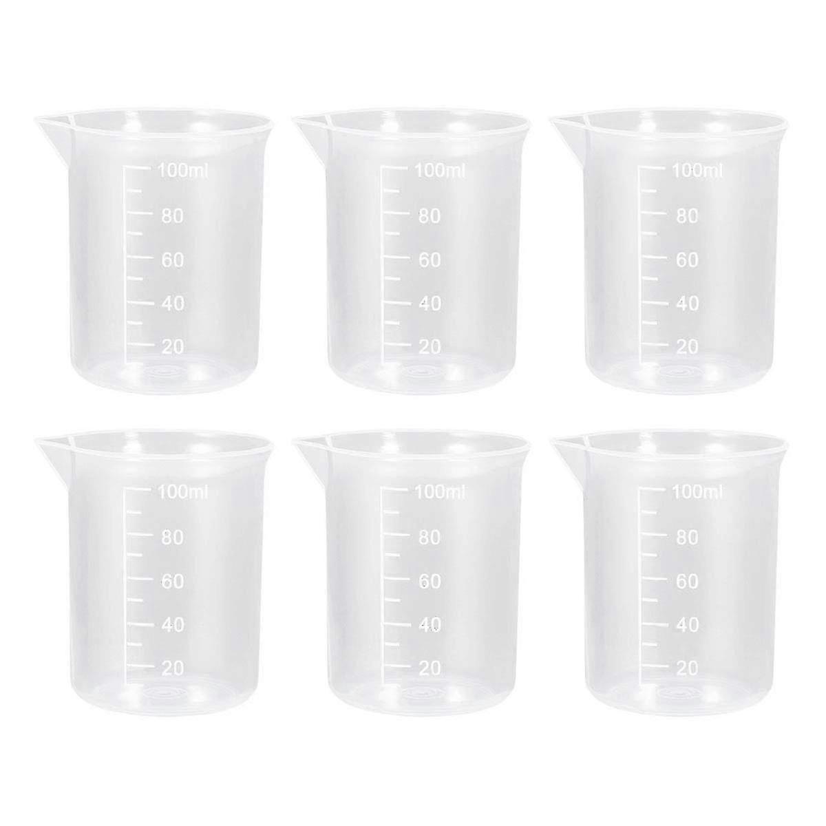 6pcs 100ml Plastic Beakers Measuring Cups Lab Liquid Container-YNP 2025