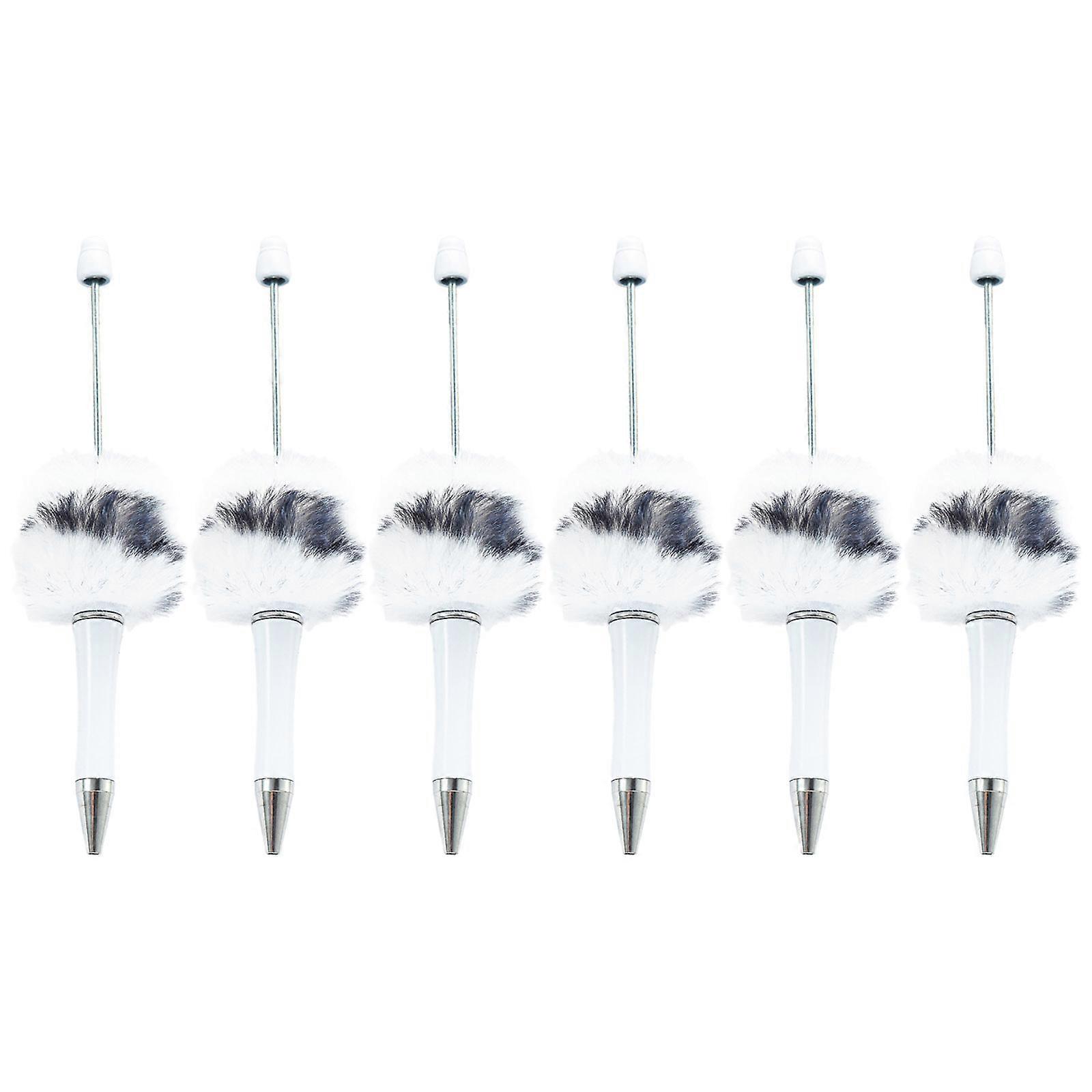 6Pcs Beadable Ballpoint Pen Novelty Ballpoint Pen Plush Ball Beadable Pen for Student Boy Girl Reward Birthday Gift