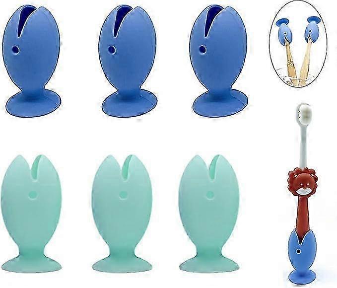 6Pcs Standing Tooth Brush Head Cover, Silicone Protector Cap,Toothbrush Suction Cup Holder,Dustproof, Fish Shape, Blue&Green 4.5*2.6cm